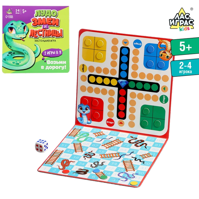 Настольная игра «Лудо. Змеи и лестницы», 2-4 игрока, 5+
