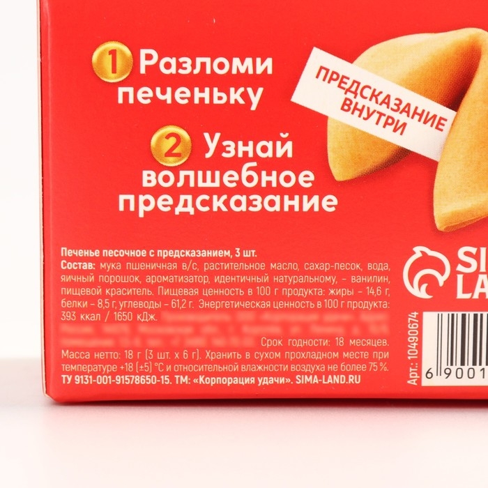 Печенье песочное с предсказаниями "Стандарт", 12 шт., 84 г