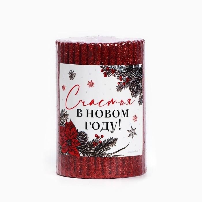 Новогодняя свеча-столбик с блестками «Новый год: Счастья в новом году», 8,5 х 6 см