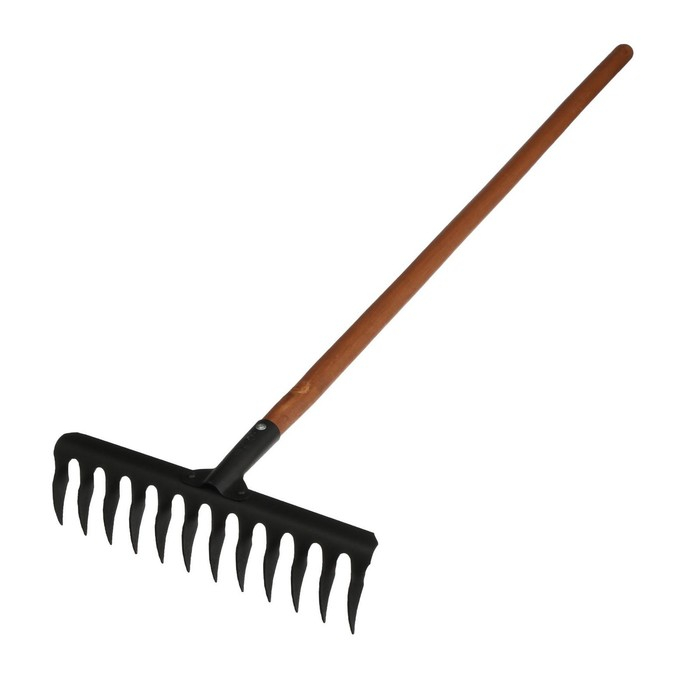Грабли прямые, витой зуб, 12 зубцов, металл, деревянный черенок, Greengo