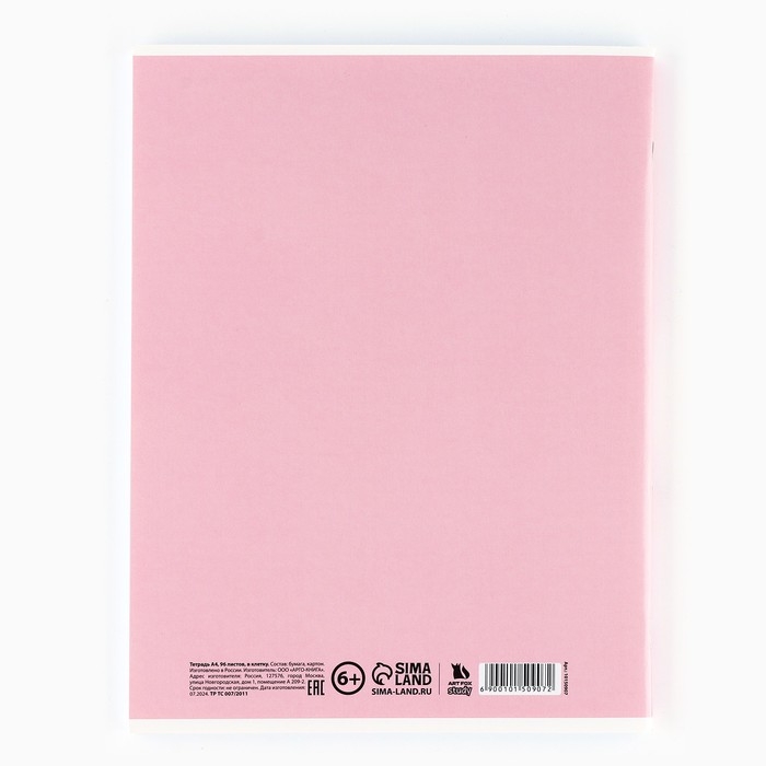 Тетрадь в клетку А4 в клетку, 96 листов на скрепке «1 сентября:Розовая текстура»