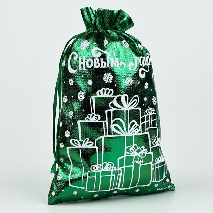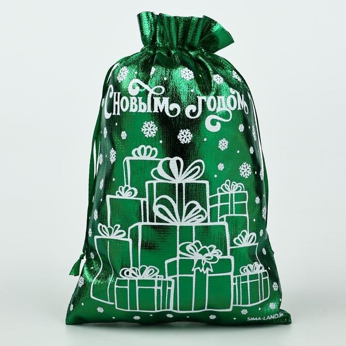 Мешочек подарочный парча «Новогодние подарки», зелёный, 16 х 24 см, Новый год