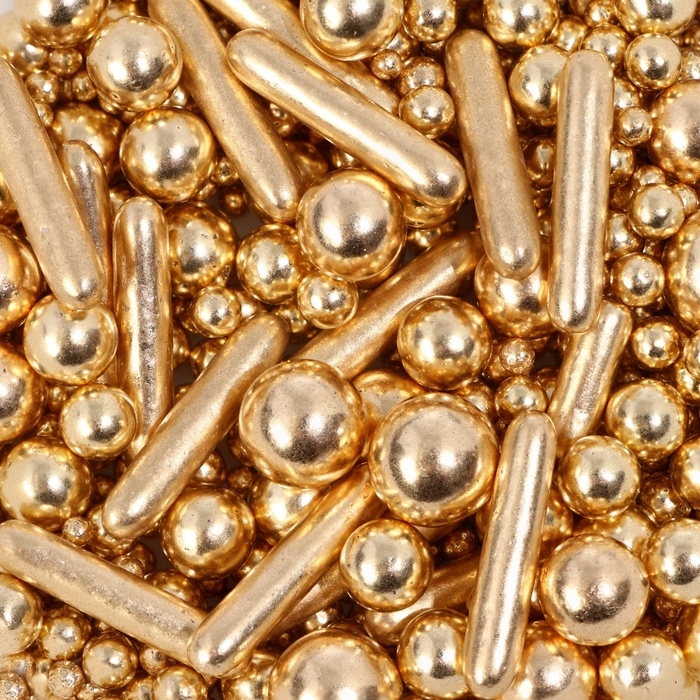 Кондитерская посыпка золотого цвета – это изысканный и элегантный элемент декора, который способен превратить любое кондитерское изделие в настоящее произведение искусства. Эти маленькие золотые крупинки добавляют роскошный блеск и утонченность тортам, пирожным, капкейкам и другим десертам, придавая им праздничный и нарядный вид. Золотая посыпка идеально подходит для особых случаев, таких как свадьбы, юбилеи или новогодние торжества, где важно подчеркнуть атмосферу изысканности и сделать угощения по-настоящему запоминающимися.