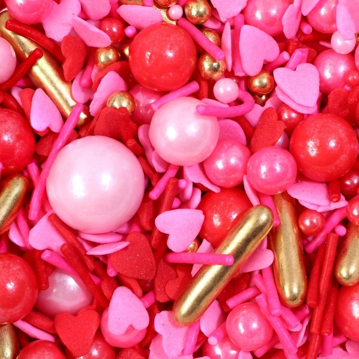 Идеально подходящая для особых случаев, таких как День святого Валентина, свадьбы, юбилеи и другие торжества, эта посыпка превращает любое кондитерское изделие в настоящий шедевр. Золотой цвет добавляет шик и роскошь, красный – страсть и энергию, а розовый – нежность и романтичность. Вместе эти цвета создают гармоничный и привлекательный декор, который не только радует глаз, но и подчёркивает уникальность каждого десерта. С этой посыпкой ваши сладости станут центральным украшением любого праздника, вызывая восхищение и добавляя нотку волшебства в каждое угощение.