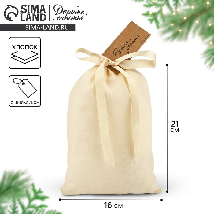 Мешок из хлопка «Ручная работа», 16 × 24 см