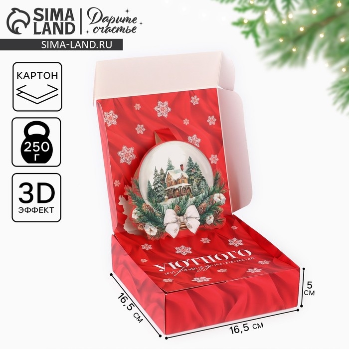 Коробка подарочная новогодняя складная «Роскошные шары», 16.5 × 16,5 × 5 см