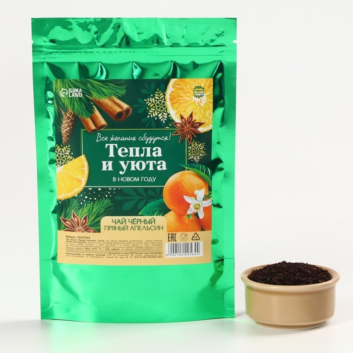 Новый год! Чай чёрный в дой-паке, пряный апельсин «Тепла и уюта», 50 г