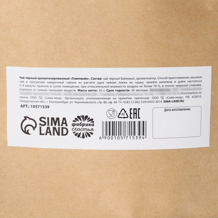 Новый год! Чай чёрный, глинтвейн «Счастья в новом году», 50 г