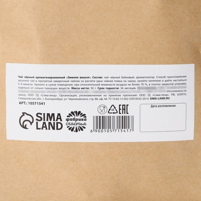 Новый год! Чай чёрный, зимняя вишня «Всё исполнит новый год», 50 г
