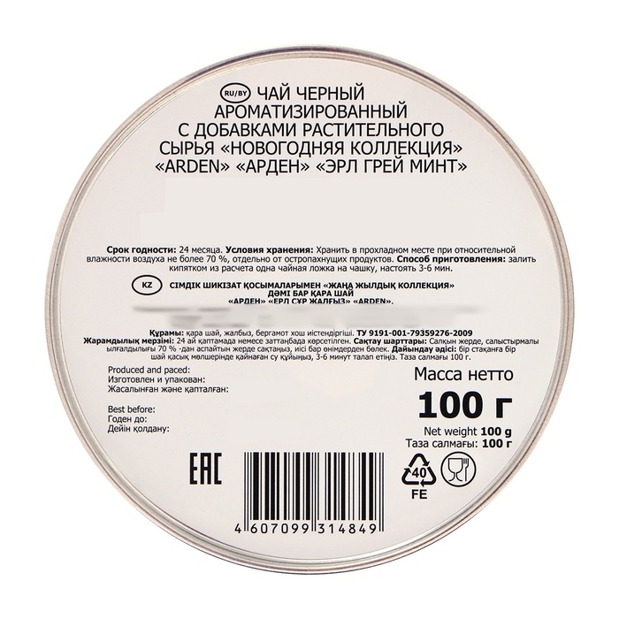 Чай чёрный Arden "Новогодняя коллекция", со вкусом Эрл Грей минт, 100 г