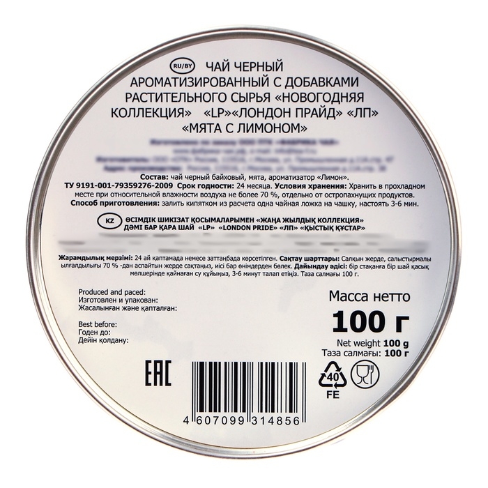 Чай черный "Лондон Прайд" - это новогодний чёрный чай в подарочной банке со вкусом мяты и лимона. Этот чай станет отличным подарком для любителей чая, которые ценят качество и аромат напитка.