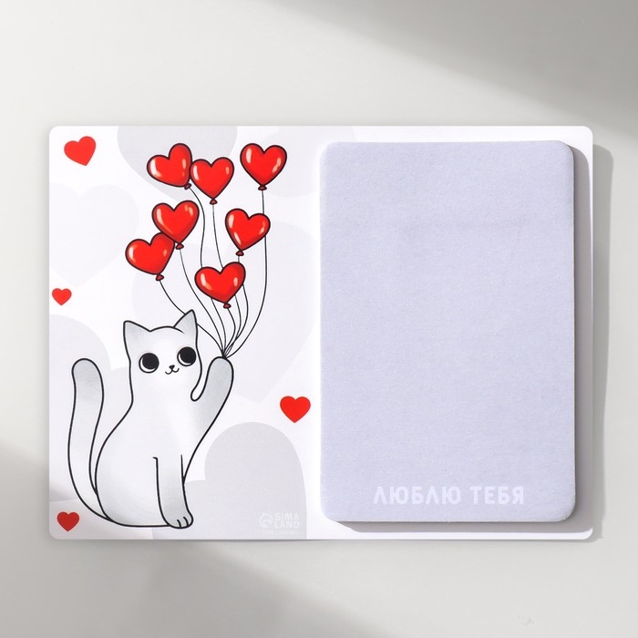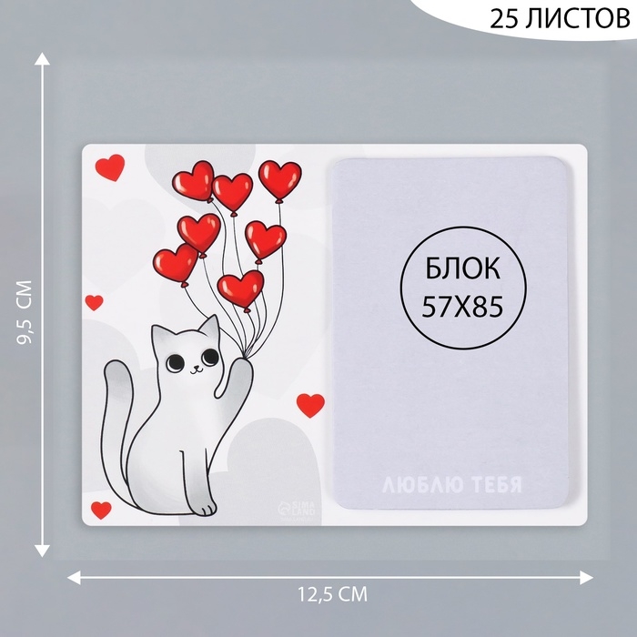 Магнит с блоком для записей "Котик с шариками" 12,5х9,5 см