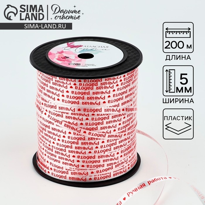 Лента для декора и подарков «Ручная работа», 0.5 см х 200м