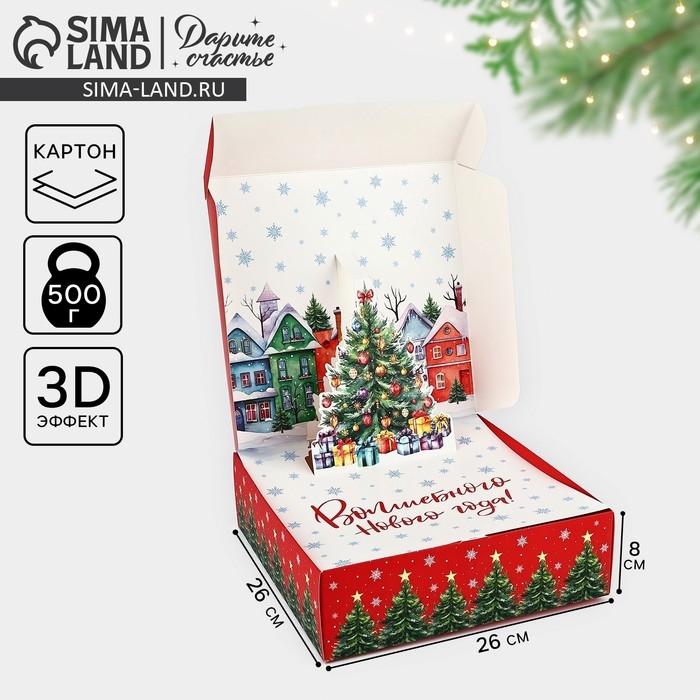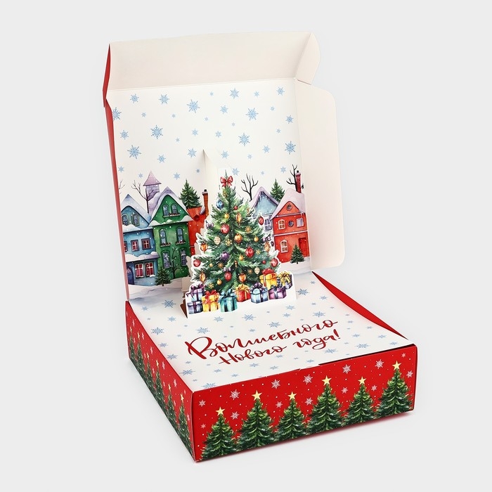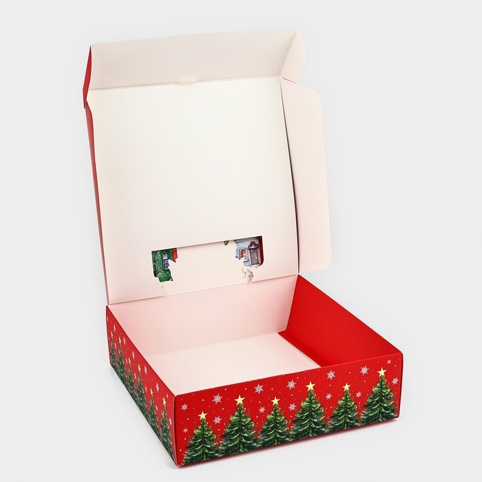 Подарочная коробка новогодняя складная «Городская жизнь», 26 × 26 × 8 см