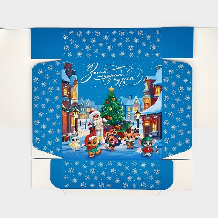 Подарочная коробка новогодняя складная «Зимних чудес», 26 × 26 × 8 см
