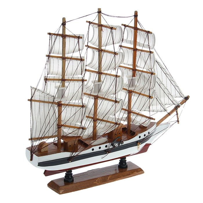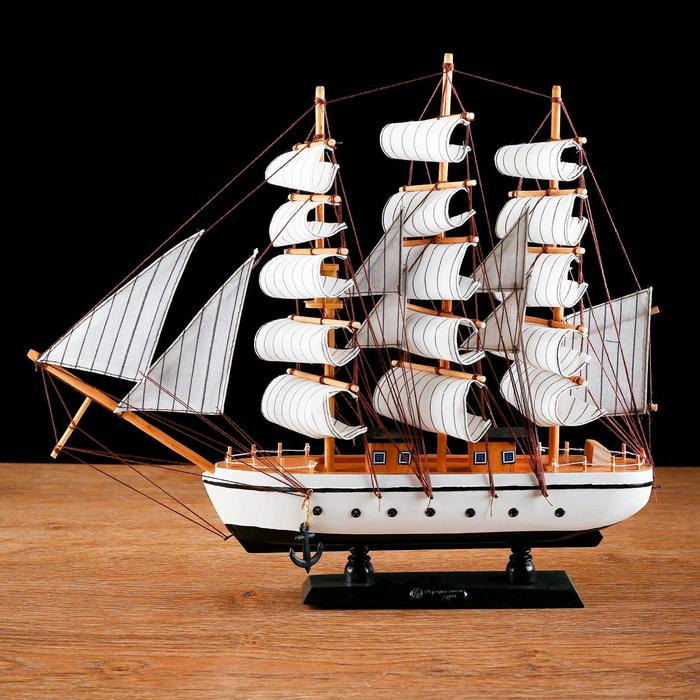 Корабль сувенирный средний «Пиллад», борта белые, паруса белые, 45х9х41 см