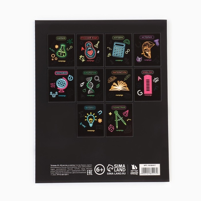 Предметная тетрадь А5, 48 л на скрепке «Неон. Биология» Софт тач лам, 3D лак