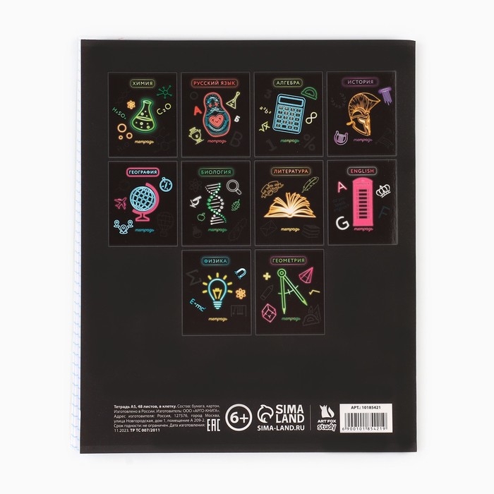 Предметная тетрадь А5, 48 л на скрепке «Неон. Геометрия» Софт тач лам, 3D лак