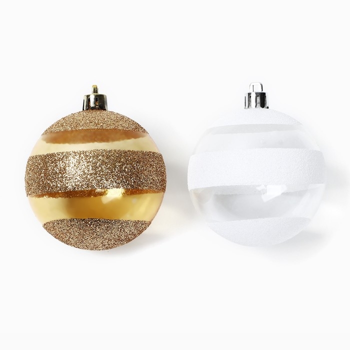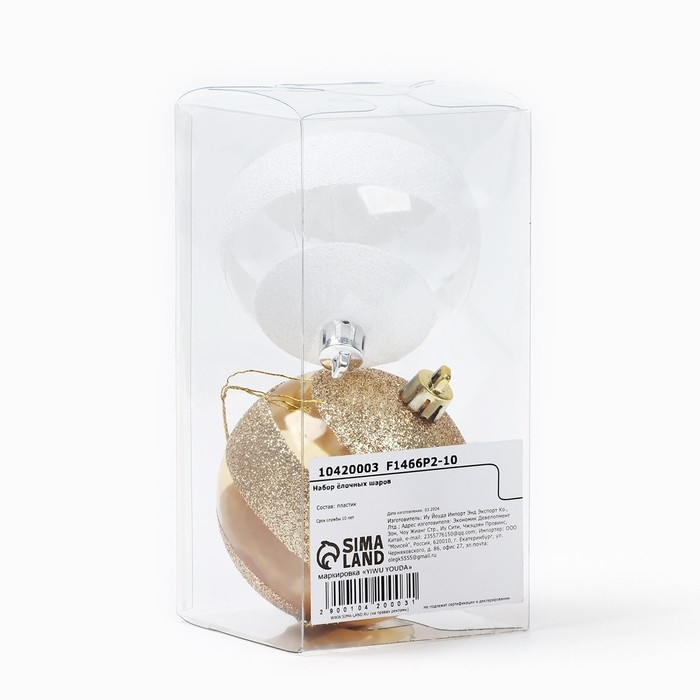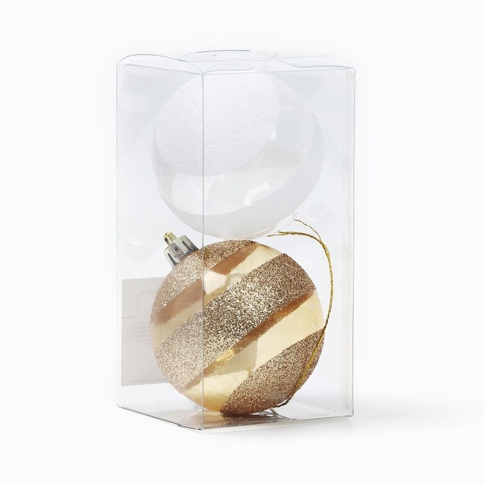 Новогодние шары ёлочные, на Новый год, d=7 см, 2 шт., цвет белый и золотой