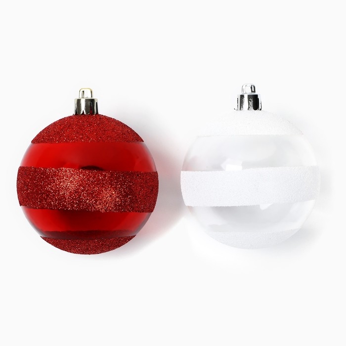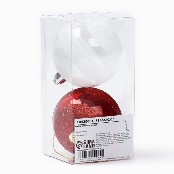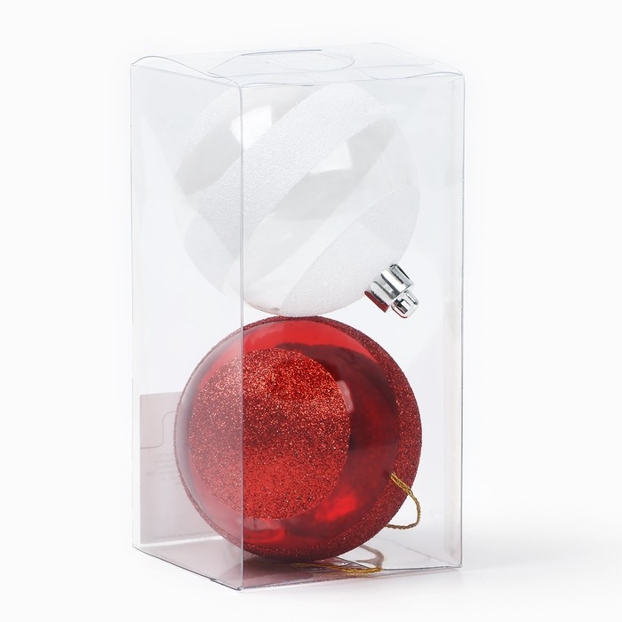 Новогодние шары ёлочные, на Новый год, d=7 см, 2 шт., цвет белый и красный