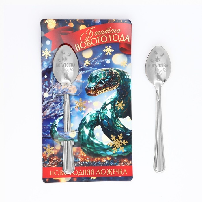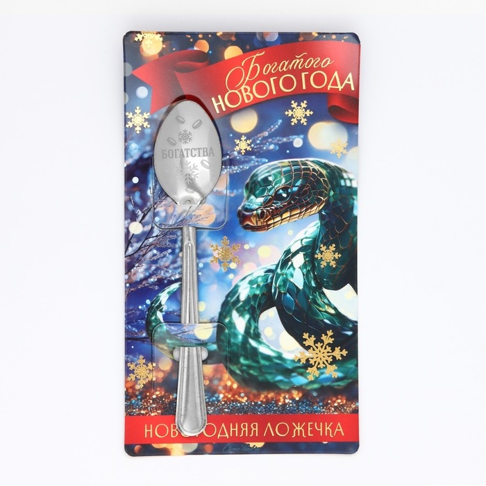 Ложка сувенирная на открытке «Новогодняя коллекция: Богатого нового года», 3 х 14 см
