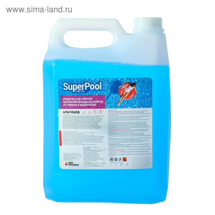 Средство для обработки бассейнов Альгицид, "Супер - Пул", от грибков и водорослей, 5 л