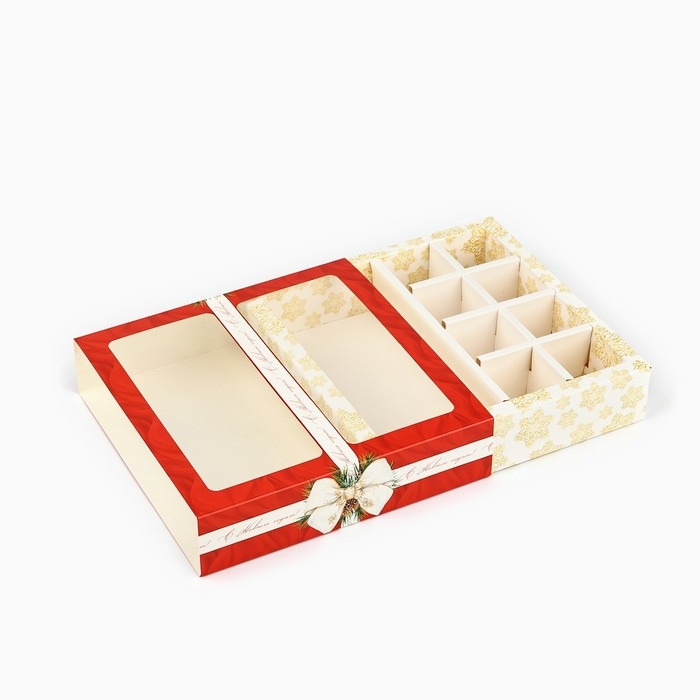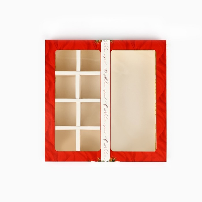 Коробка под 8 конфет и шоколад с ячейками «Новогодняя роскошь», 18 х 18 х 4 см, Новый год