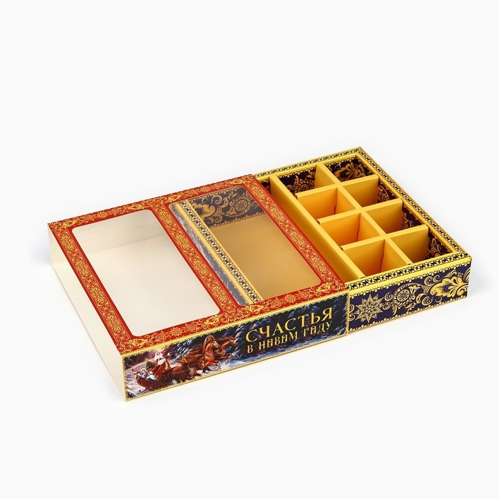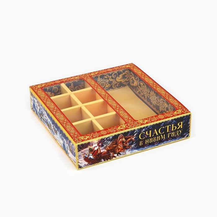 Коробка под 8 конфет и шоколад с ячейками «Счастья в Новом году!», 18 х 18 х 4 см, Новый год