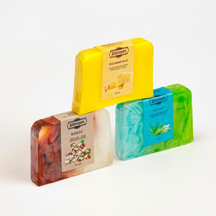 Набор мыла в спайке 3 шт "Кокос, Пчелиный воск, Алое" по 80г