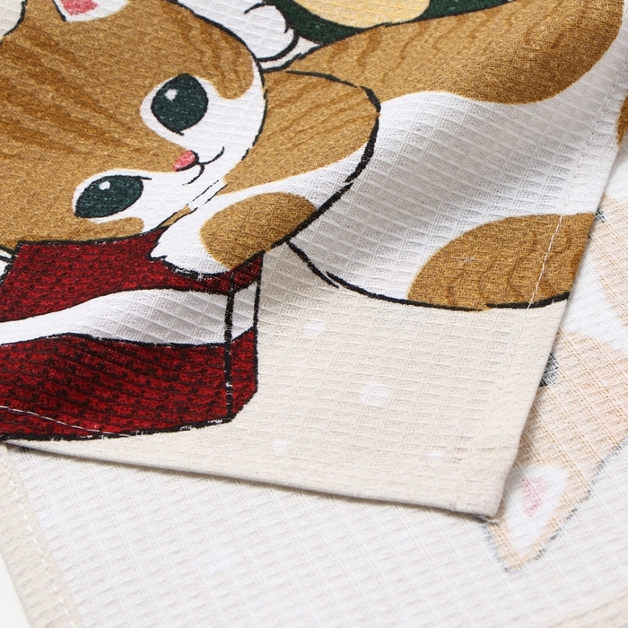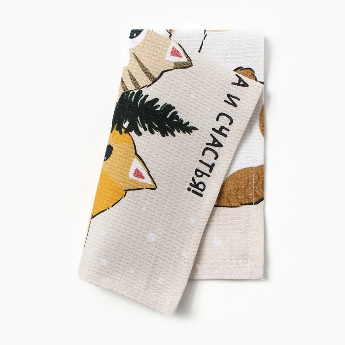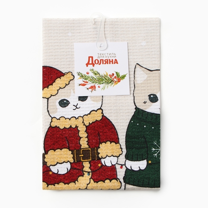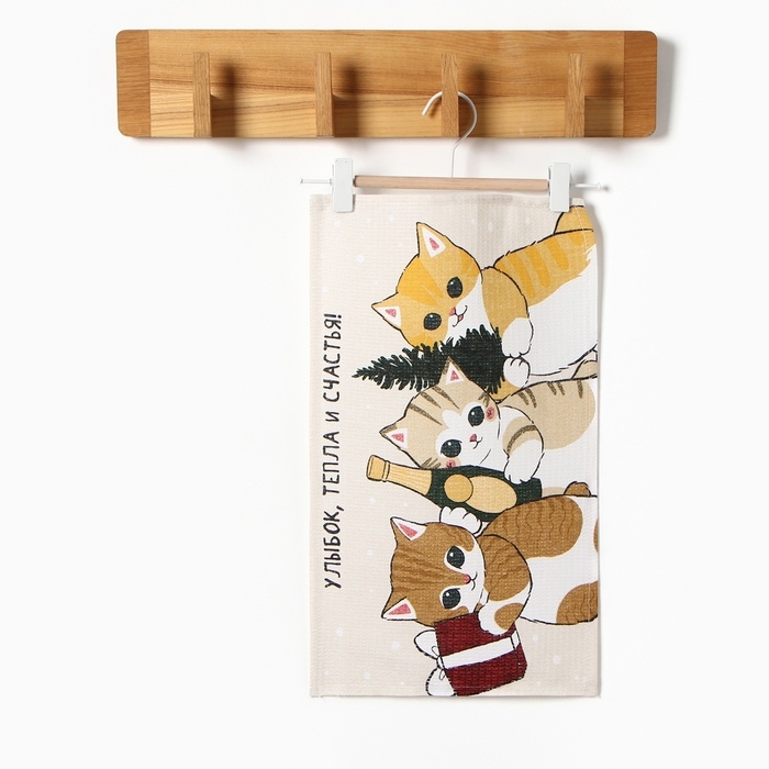 Новый год. Полотенце Доляна "Улыбок, тепла и счастья" 28х46 см, 100% хл, рогожка 164 г/м2