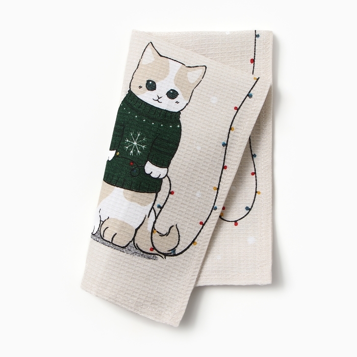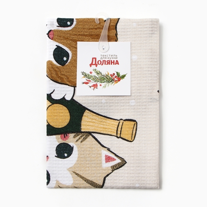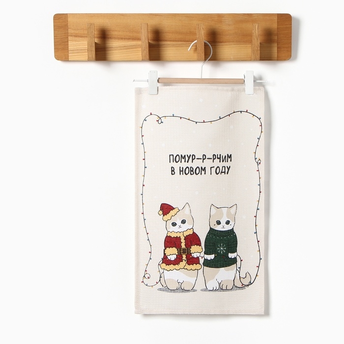 Новый год. Полотенце Доляна "Помурчим в новом году" 28х46 см, 100% хл, рогожка 164 г/м2