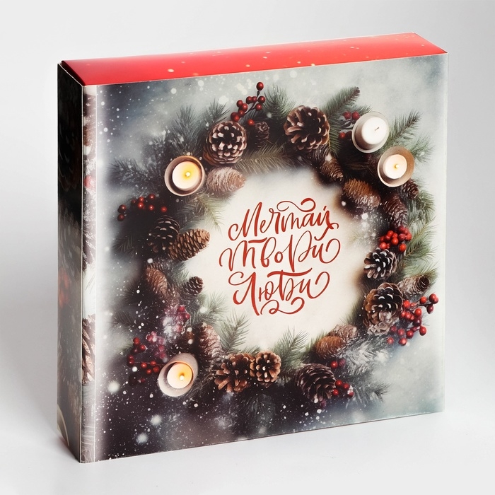 Прекрасно оформленная коробка выполнена в традиционном праздничном стиле, что придает ей волшебное зимнее очарование.
