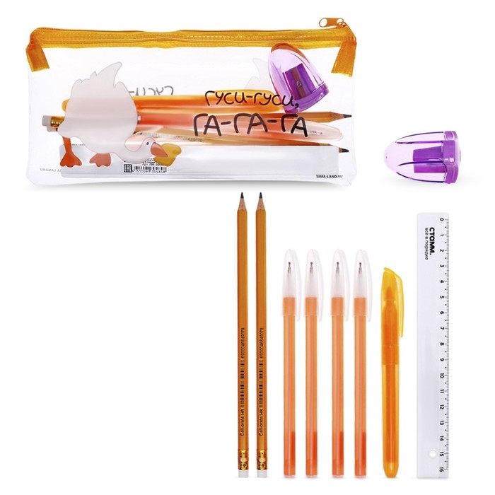 Пенал мягкий, 1 отделение, 95 х 205 мм, плоский, c наполнением 9 предметов, Calligrata "Гуси-гуси", универсальный