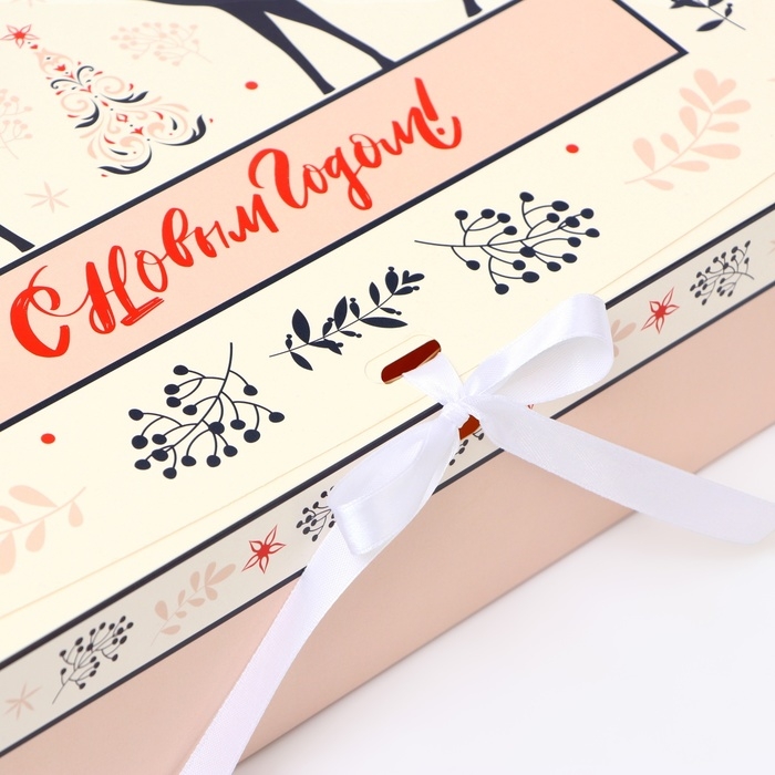Коробка украшена изысканным новогодним дизайном. Этот дизайн создает ощущение тепла и радости, добавляя к вашему подарку праздничное настроение.