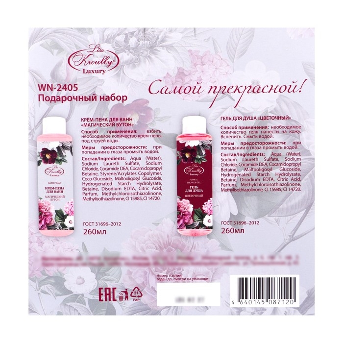 Подарочный набор косметики Liss Kroully: крем-пена для ванн, 260 мл + гель для душа, 260 мл