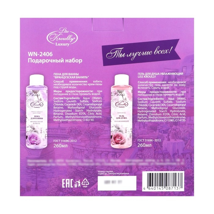 Подарочный набор косметики Liss Kroully: крем-пена для ванн, 260 мл + гель для душа, 260 мл
