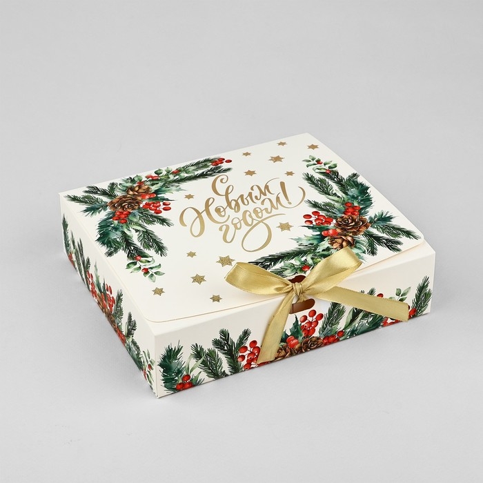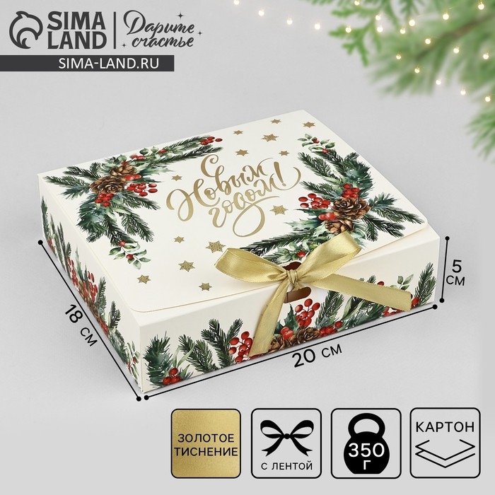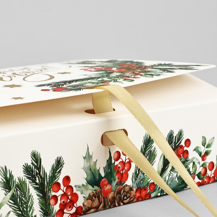 Коробка подарочная новогодняя складная «Новогодняя акварель», тиснение, 20 х 18 х 5 см, Новый год