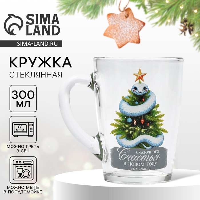 Новый год. Кружка стеклянная «Счастья», 300 мл