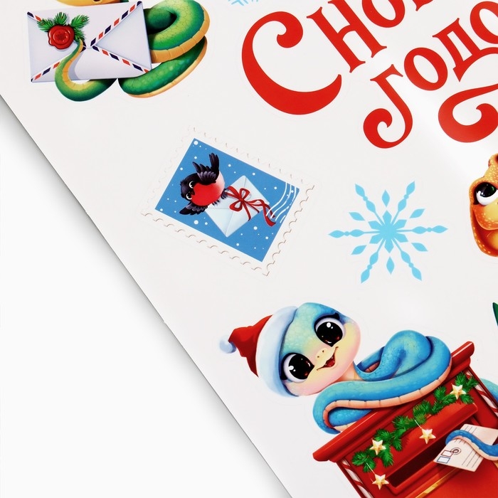 Наклейки новогодние, интерьерные «Змея 2025», 29.7 х 42 см, Новый год