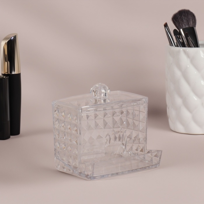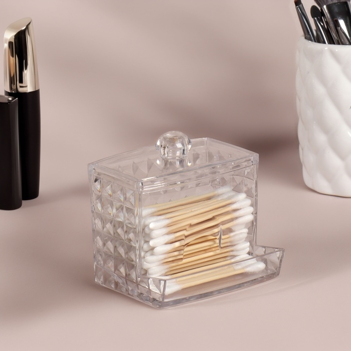 Органайзер для ватных палочек, с крышкой, 8,8 × 7,5 × 8 см, в картонной коробке, цвет прозрачный