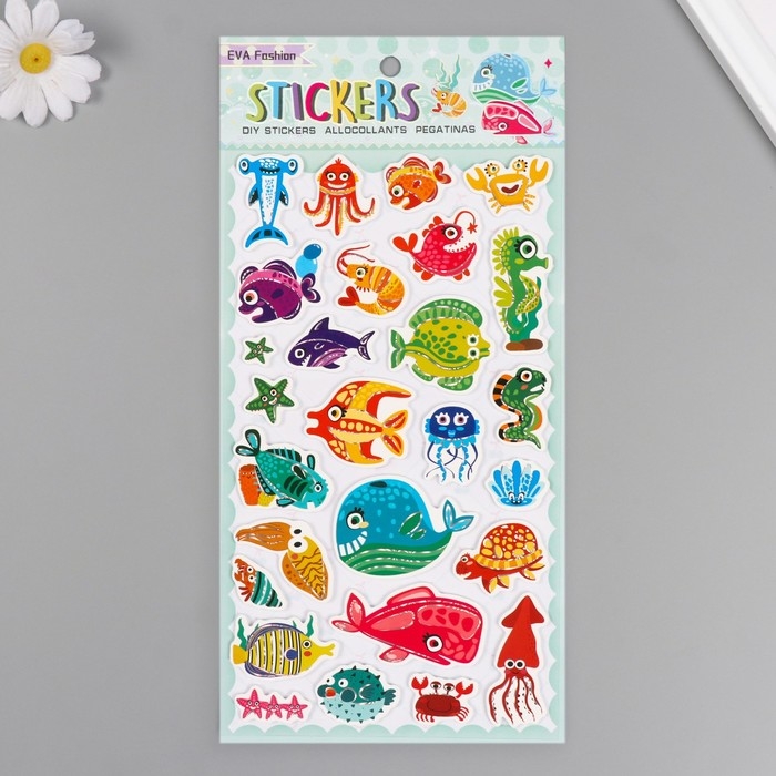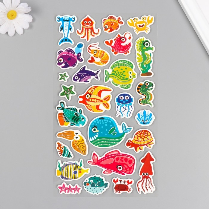 Наклейки для творчества бумага "Рыбный мир" 15х30 см