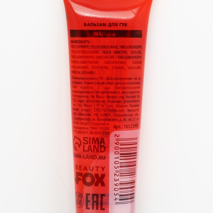 Бальзам-масло для губ с витамином Е, 18 мл, аромат малины, BEAUTY FOOD