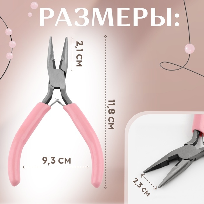 Тонкогубцы с зазубринами, для рукоделия, 12,5 × 6,5 см, цвет серебряный/розовый