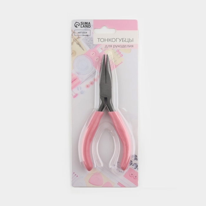 Тонкогубцы изогнутые, для рукоделия, 13 × 6,5 см, цвет серебряный/розовый