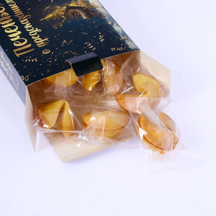 Новогоднее печенье с предсказанием "С Новым 2025 годом" — это уникальный способ добавить волшебства и интриги в ваше новогоднее празднование. Каждое печенье скрывает в себе небольшое предсказание, которое станет приятным сюрпризом для всех участников праздника. Упакованное в яркую и праздничную коробку, оно не только радует своим вкусом, но и создает атмосферу ожидания и чуда, присущую новогодним праздникам.Такой набор станет отличным подарком для друзей и близких, добавляя нотку радости и надежды в их жизнь. Красивое оформление коробки делает его идеальным для праздничного стола или в качестве оригинального сувенира. Печенье с предсказанием подарит не только сладкий вкус, но и теплые пожелания на наступающий год, делая встречу 2025 года особенно запоминающейся и волшебной.