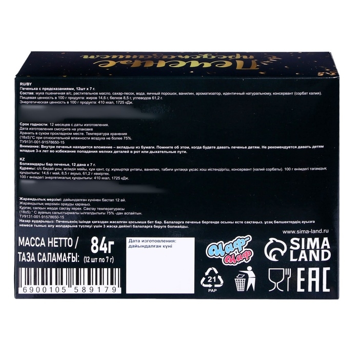 Печенье песочное с предсказаниями "Стандарт", 12 шт., 84 г