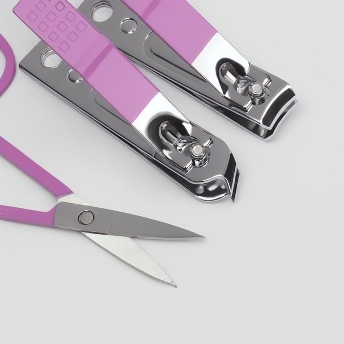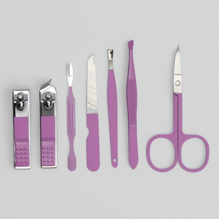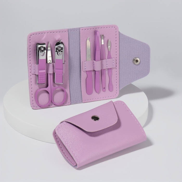 Набор маникюрный, 7 предметов, в футляре, цвет сиреневый