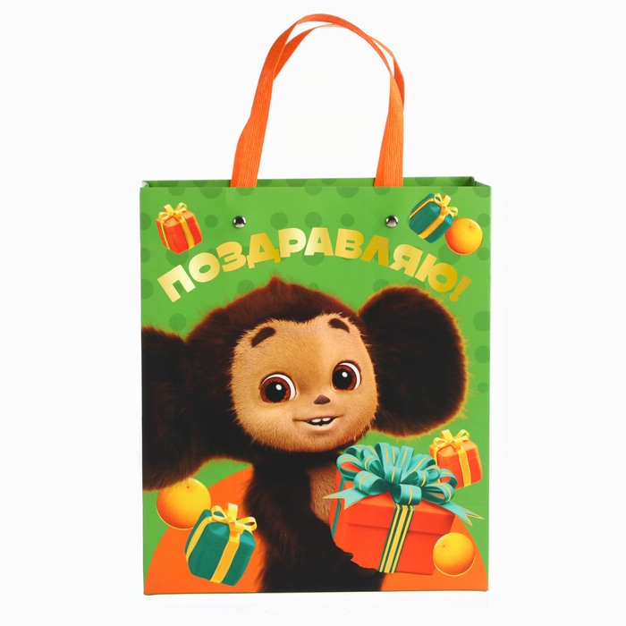 Пакет подарочный ламинированный с тиснением "Поздравляю!", Чебурашка, 23х27х11,5 см
