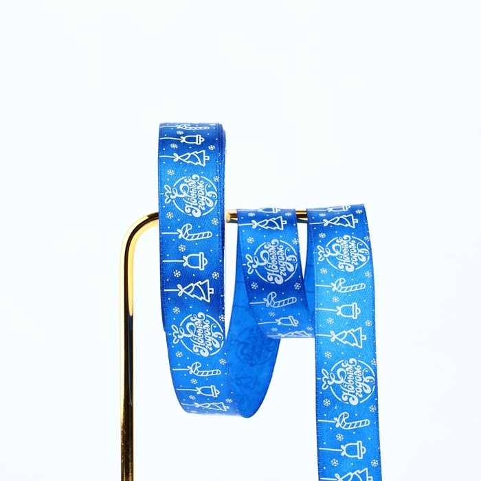 Лента атласная «Ёлочные игрушки», голубая, 2 см х 5 м, Новый год