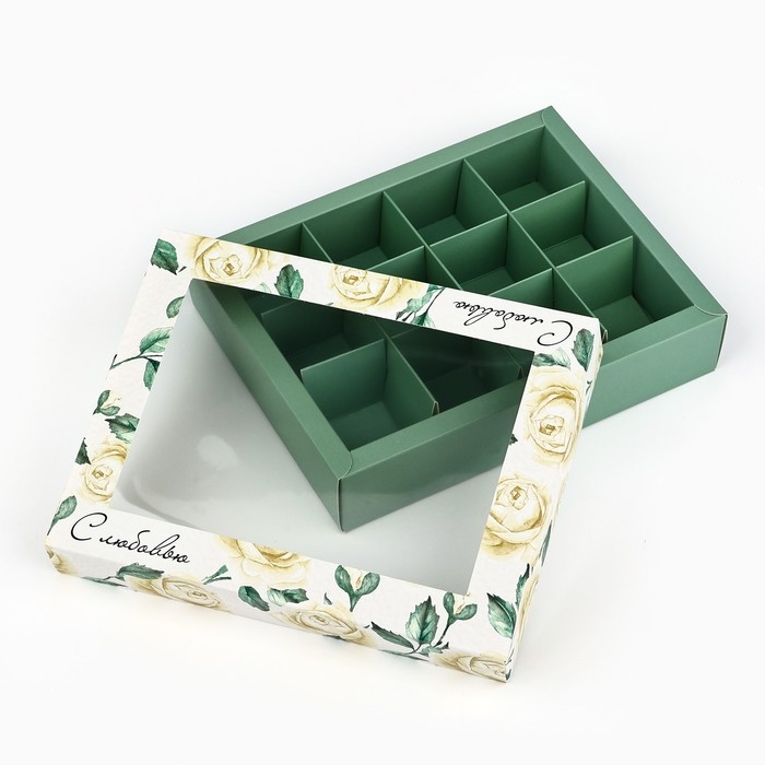 Коробка складная под 12 конфет «С любовью», 14,4 х 18,4 х 3,8 см